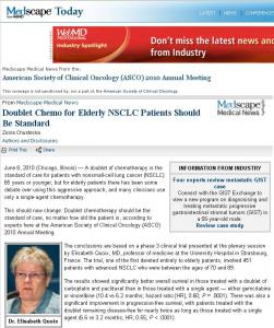 Résultats de l’étude IFCT-0501 de phase III menée par l’IFCT : doublet de chimiothérapie versus monothérapie chez le sujet âgé porteur d’un CBNPC. Entretien du Pr E.A. Quoix (Hôpitaux Universitaires, Strasbourg) lors de l’ASCO 2010 (Chicago, IL USA).